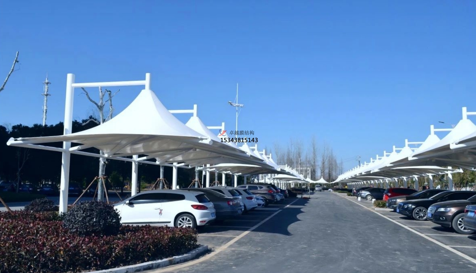 例如為一個大型商業中心的停車場建造車棚,則需要考慮車棚的空間大小和承載能力,那么捷樅為您推薦骨架式膜結構車棚,因為它具有較強的承載能力和穩定性,能夠覆蓋更大的面積,并滿足大量車輛的停放需求。