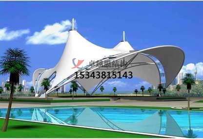 膜結構景觀建筑排水設計依可然采用無組織排水或有組織排水方式。由于膜結構景觀建筑的造型奇特,自由曲面,應充分考慮造型與排水的合理方式。膜結構景觀排水坡度要求大于一般建筑。平膜坡度15%~20%以上,雙曲膜脊度應大于10%。同時膜面預張力1.0~2.0kN/m以上,避免膜材在雨水作用下發生較大變形,從而在膜面產生積水、兜水。膜面積水具有馬太效應特點,積水將導致局部凹陷變形,凹陷變形反過來加劇積水現象。足夠坡度、曲率和張力水平是保證排水順暢的必要條件。導水板、導水溝、落水管等膜結構景觀設計宜與膜節點構造設計協調。