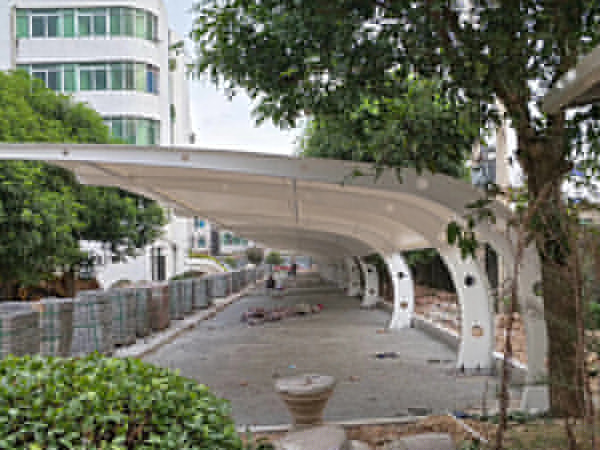 膜結構停車棚的時候一定要注意的是,就是停車棚的棚頂應該具體建筑物或者窗戶一定距離,防止高空墜物等情況把棚頂砸壞。