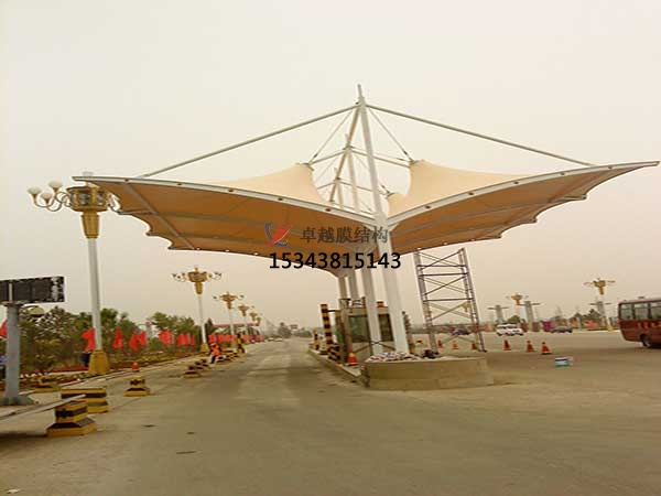 膜結構(Membrane Structure),即張拉膜結構(Tesioned Membrane Structure),是依靠膜材自身的張拉力和特殊的幾何形狀而構成穩定的承力體系。膜結構通過(鋼架、鋼柱或鋼索)一定方式使其內部產生一定的預張應力以形成某種空間形狀,作為覆蓋結構,并能承受一定的外荷載作用的一種空間結構形式,膜只能承受拉力而不能受壓和彎曲,其曲面穩定性是依靠互反向的曲率來保障,因此需制作成凹凸的空間曲面,故習慣上又稱空間膜結構。