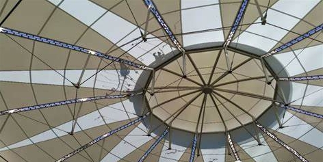 索膜結構建筑的優勢特點:其優勢特點有大跨度無柱空間、輕質節能、快速施工、藝術表現力、造型自由、節能環保、抗風抗震強、透光性好、維護成本低等。大跨度無柱空間表現在其能突破傳統結構限制,覆蓋面積可達數萬平方米(如青島頤中體育場3萬㎡屋面)。輕質節能表現在其自重僅為傳統建筑的1/30,減少基礎造價;透光膜材降低日間照明能耗。快速施工主要指工廠預制膜片與索構件,現場組裝效率高,工期可比傳統建筑縮短75%。藝術表現力是指曲面造型自由靈動,如大阪世博會盧森堡館以莫比烏斯帶為靈感的膜結構,兼具投影載體功能。造型自由,能根據設計師的靈感,實現各種曲面、弧形等獨特造型,讓建筑物更具藝術性。節能環保,使用材料較少,制造過程能耗低,膜材透光性好,可大幅減少白天人工照明需求。施工快速,材料輕便,通常通過預制組件進行安裝,施工周期短,能節省人工和時間成本。抗風抗震強,輕質和柔性特點使其在面對風力或地震時能分散外力,減少直接沖擊,提升安全性。透光性好,膜材的透光性可為建筑提供所需照度,創造出自然漫射光的室內空間視覺環境,夜晚還可成為光的雕塑。維護成本低,一些膜材如 PTFE 膜材抗老化性能好,壽命長,且膜面光滑,灰塵等不易附著,經雨水沖刷可恢復清潔。