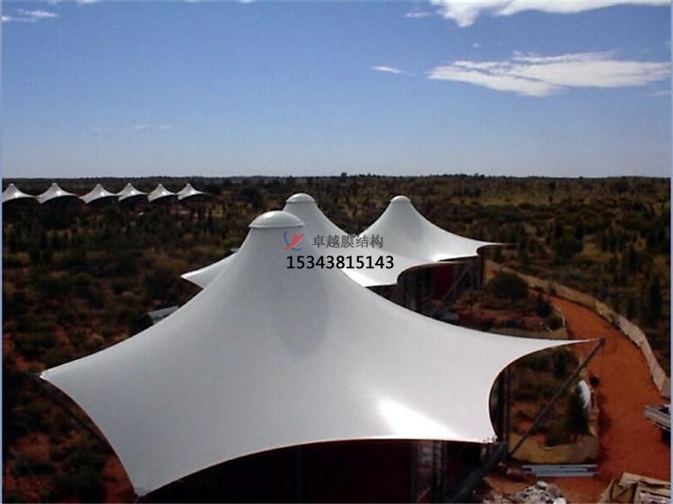 張拉膜景觀完工后,需定期進行維護檢查工作,定期檢查支承結構,鋼索,螺栓等處的腐蝕情況。 腐蝕發生輕微的情況,可先除去腐蝕層,然后重新做好表面的防腐處理。螺栓連接發生腐蝕,應予 以更換。張拉膜景觀為柔性結構,剛度小,自振頻率低,在外來風荷載下易發生大的變形并伴隨著振動 現象。在某些風荷載一致比較大的地區,張拉膜景觀的角板有可能長時間處于振動狀態,曾近發生過固 定角板的銷栓脫落的事故。發生事故的工程使用的是索結構常用的蓋板+螺釘固定式樣銷栓,螺釘由 于長時間振動松掉造成蓋板脫落,銷栓脫落。建議在振動頻繁的部位(特別是角板處)使用帶開口 銷的銷栓,開口銷材質為 SS304 或 SS316 不銹鋼材質(碳鋼鍍鋅的材質時間長了容易自然銹斷,不安全)。