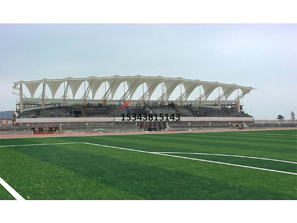 田徑場膜結構遮陽棚特點:田徑場膜結構遮陽棚具有美觀大方、耐用性強、安裝便捷、節(jié)能環(huán)保、透光性好等特點。:膜結構遮陽棚造型獨特、線條流暢,具有很強的現代感和藝術感,能夠與田徑場及周圍環(huán)境完美融合,提升場地的整體美觀度和檔次。采用了高強度、耐腐蝕的膜材,如聚四氟乙烯(PTFE)膜、聚酯滌綸(PET)薄膜等,可有效抵御紫外線、風雨等自然因素的侵蝕,使用壽命長達數十年。膜結構遮陽棚的構件在工廠預制完成后,運輸到現場進行組裝和安裝,過程相對簡單快捷,大大縮短了施工周期,減少了對田徑場正常使用的影響。其具有良好的隔熱保溫性能,能有效降低空調能耗;同時,膜材表面光滑易清潔,減少了維護工作量,且使用壽命長,降低了更換頻率及維修費用。可以讓自然光線充分照射進來,使田徑場內保持明亮,節(jié)省白天的照明能源,同時避免陽光直射導致的眩光,為運動員和觀眾提供舒適的視覺環(huán)境。
