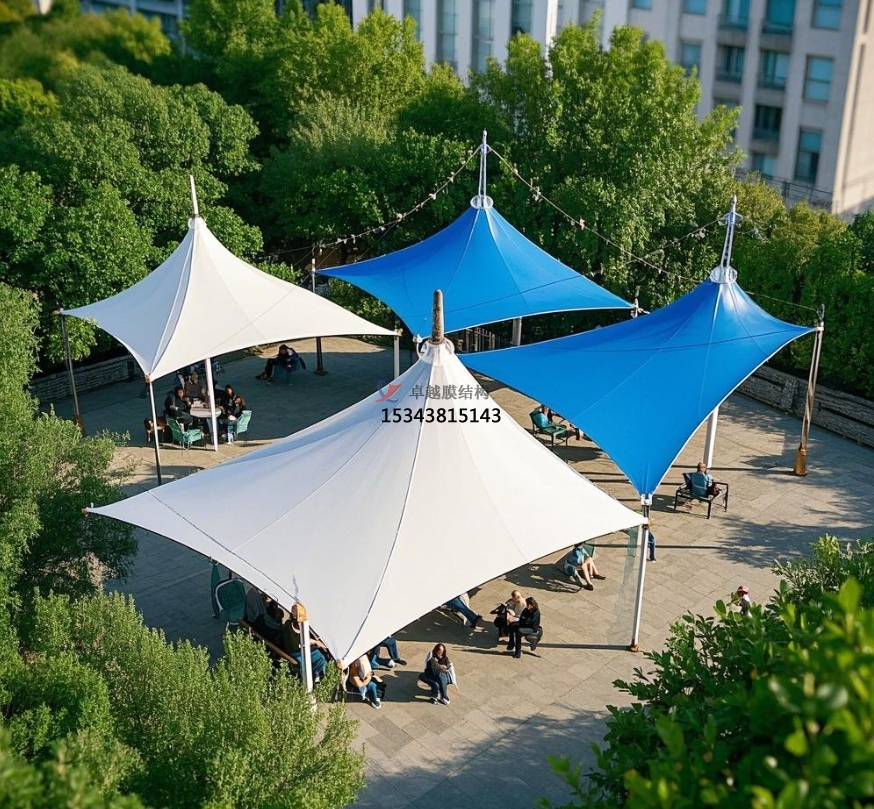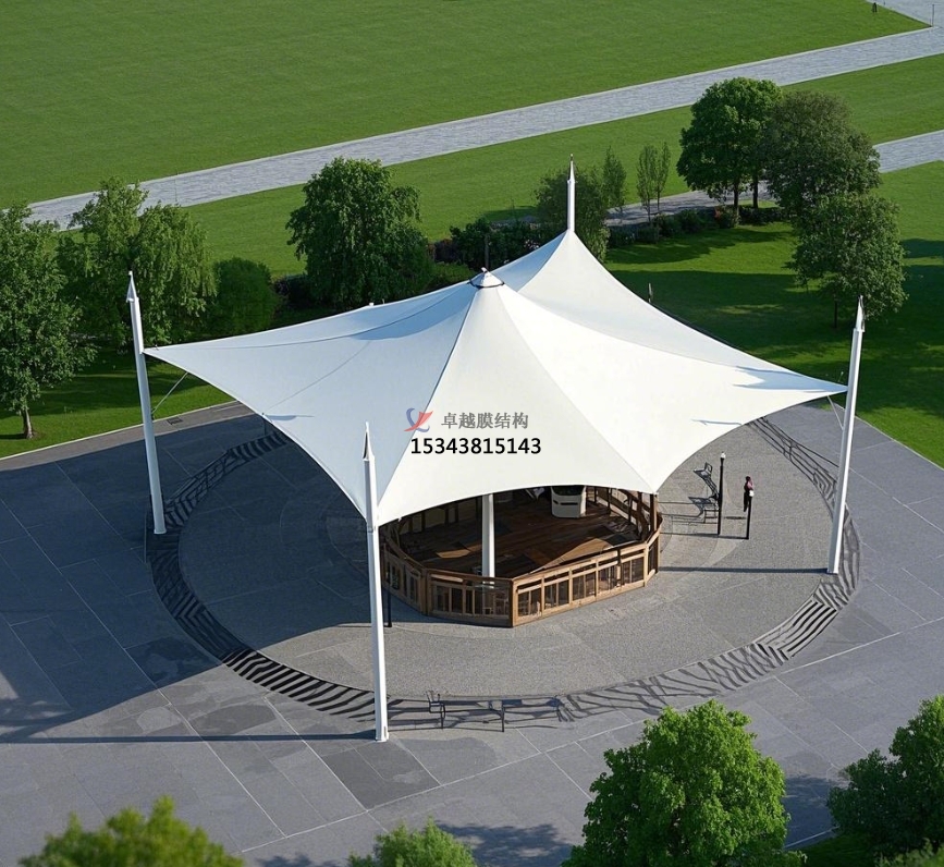 膜結構景觀亭放置在公園的開闊草坪、花壇中央等顯眼位置,成為公園的標志性景觀。其多樣的造型,如傘狀、蘑菇狀、飛鳥狀等,吸引著游客的目光,成為公園的視覺焦點。亭內設置的座椅、茶幾等休閑設施,供游客休息、交談,部分景觀亭配備的照明設備,在夜間亮起,將景觀亭裝點得格外美麗,成為公園亮化景觀的一部分,為公園增添浪漫氛圍。