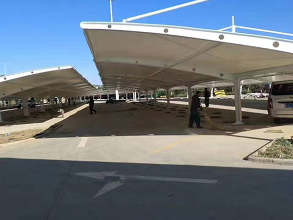 三,張拉式膜結(jié)構(gòu)停車(chē)棚的施工周期短,這也就大大節(jié)約了工程成本,我們可以按自己的想象來(lái)決定車(chē)棚更優(yōu)化的造型,也可以根據(jù)自己的預(yù)算合理選擇材料,真正做到物美價(jià)廉。