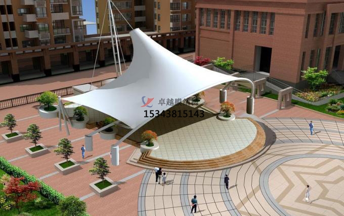 1、耐用:由于高強度的膜材出現,再加上張拉技術的應用,使景觀膜結構遮陽棚抵御風雨的能力是一般遮陽棚之類不可比擬的。有的遮陽棚采用永久性膜材,可使用三、四十年。特別是遇到劇烈的暴風雨天氣,膜結構建筑巍然不動,毫發不損。