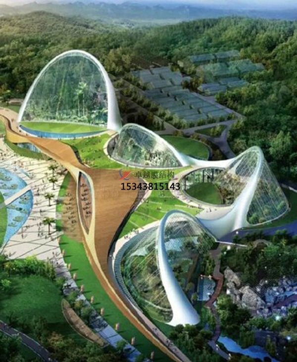 目前世界上有能力生產與加工ETFE膜材的廠家較少,僅德國、美國、日本等國少數幾個公司可生產ETFE膜材,而具有ETFE膜材加工制作、安裝能力的公司更少。ETFE膜材在國外已有20多年的應用歷史。由于其極好的透光性能,特別適合建造需人工模擬自然環境的建筑如植物園以及運動場館等。如荷蘭Arnhiem動物園、英國的Hampshire網球與健身俱樂部、英國的伊甸園、德國的“Moby Dick”游泳池、瑞士蘇黎世的Masoala雨林等建筑均采用ETFE膜。