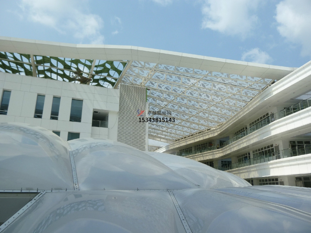 也不是所有的建筑都需要透明,或許只需要采光好半透明這種材料就可以滿足了,ETFE膜材就根據不同的建筑需求可以定制不同透光率的ETFE膜材料。無論你的設計需求是什么,我們黑龍江ETFE膜結構建筑的透光性可以滿足您對采光這方面的需求。