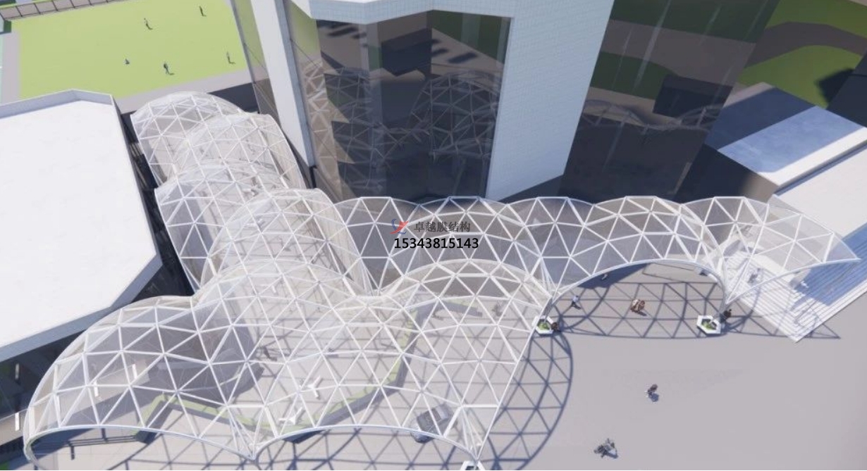ETFE膜結構建筑的透光性帶來的生活時尚美輕松的感受,更是吸引許多開發商吸引客戶緣由。室內的設計,其由建筑知識與時裝設計等多學科知識融合下的產物,時尚外觀、帶自我照明功能、多方位使用的環保ETFE膜材料構成的是它最大的特點。