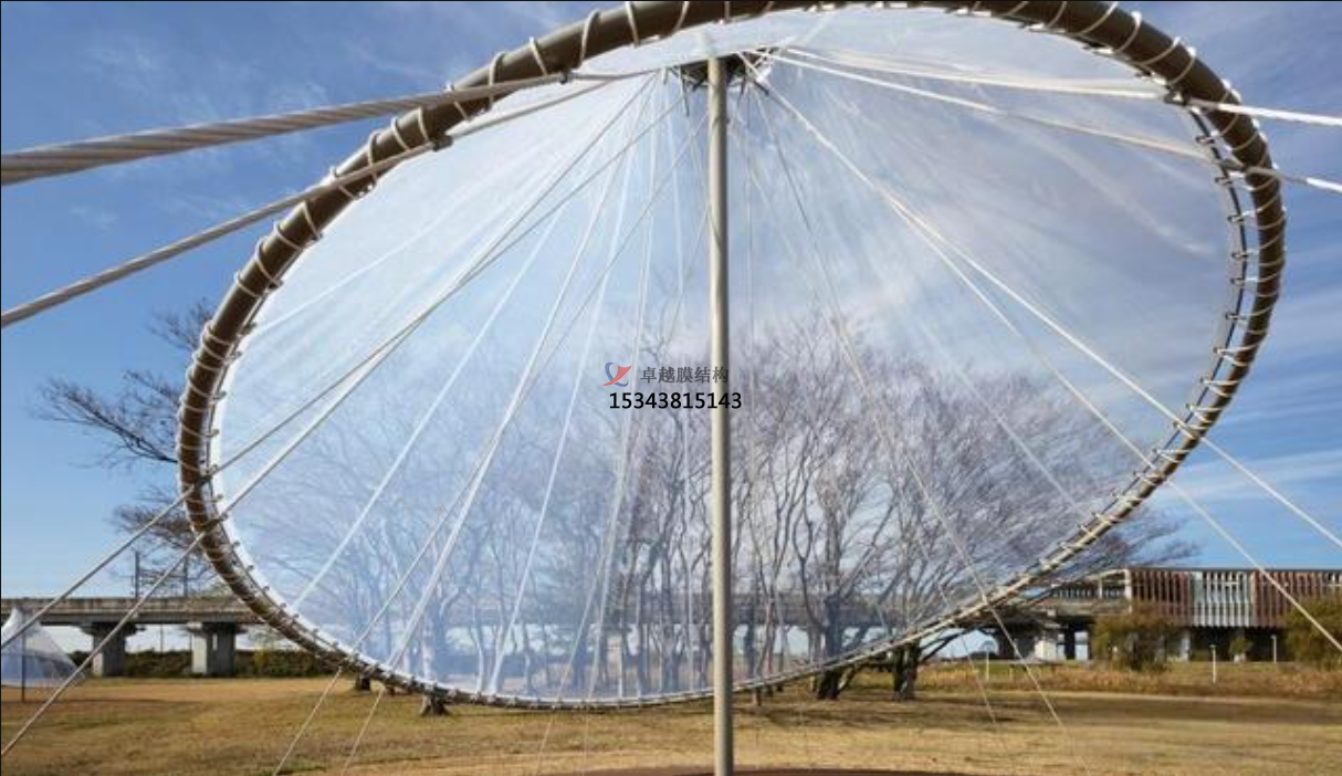 STFE不是化學成分的英文縮寫,而是膜材商品名的英文縮寫(Structural、Transparent、Fluorinated、Envelope),其本質是網格覆膜。區別在于其織物基材,不同于PVC膜材的聚酯纖維紗線,也不同于PTFE膜材的玻璃纖維紗線,而是擠壓特殊涂層的聚芳酯紗線;覆膜為特種含氟聚合物(涉及商業秘密未公開),單面覆膜。覆膜的清晰度較好,可實現一定程度的透景。同時,由于有織物基材提高了膜材強度,抗拉強度可達4000N/5cm。即使不加拉索,膜單元跨度一般在3m以上。