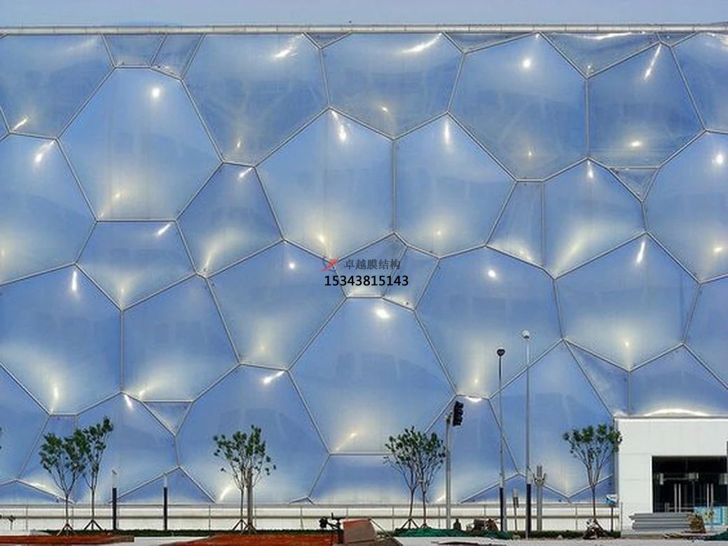 骨架膜結構的顯著特點在于:膜不是維持結構體系存在的必要結構單元,但膜又不僅僅是單純地用來覆蓋屋面體系,而是充分發揮了其建筑采光功能、高強度受力特性。因屋頂造型比較單純,開口部不易受限制,且經濟效益高等特點,廣泛適用于任何大,小規模的空間。