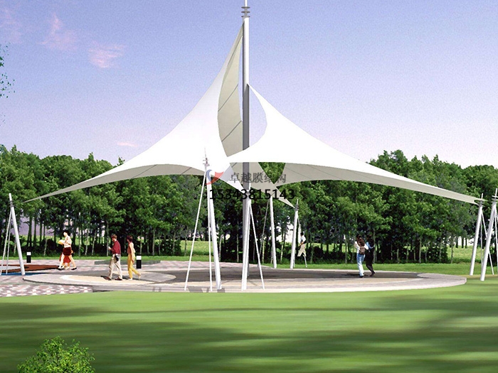 2、張拉膜景觀施工周期比較短,許多工作就可以在廠內完成,而現場只要進行裝置就可以,因此施工的工期就縮短很多;