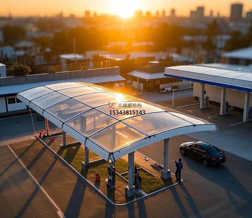 后期維護成本:膜結構雨棚維護成本極低。膜材自潔性能使雨棚表面不易積垢,一般每年僅需 1 - 2 次簡單清潔檢查即可保持外觀整潔。同時,膜材與支撐結構耐久性好,正常使用下很少損壞,降低維修成本。反觀傳統結構雨棚,需定期進行油漆保養、結構檢測等維護工作,成本較高。例如,某傳統鋼結構加氣站雨棚每年維護費用高達數萬元,而采用膜結構的同類型雨棚,年維護成本僅幾千元。
