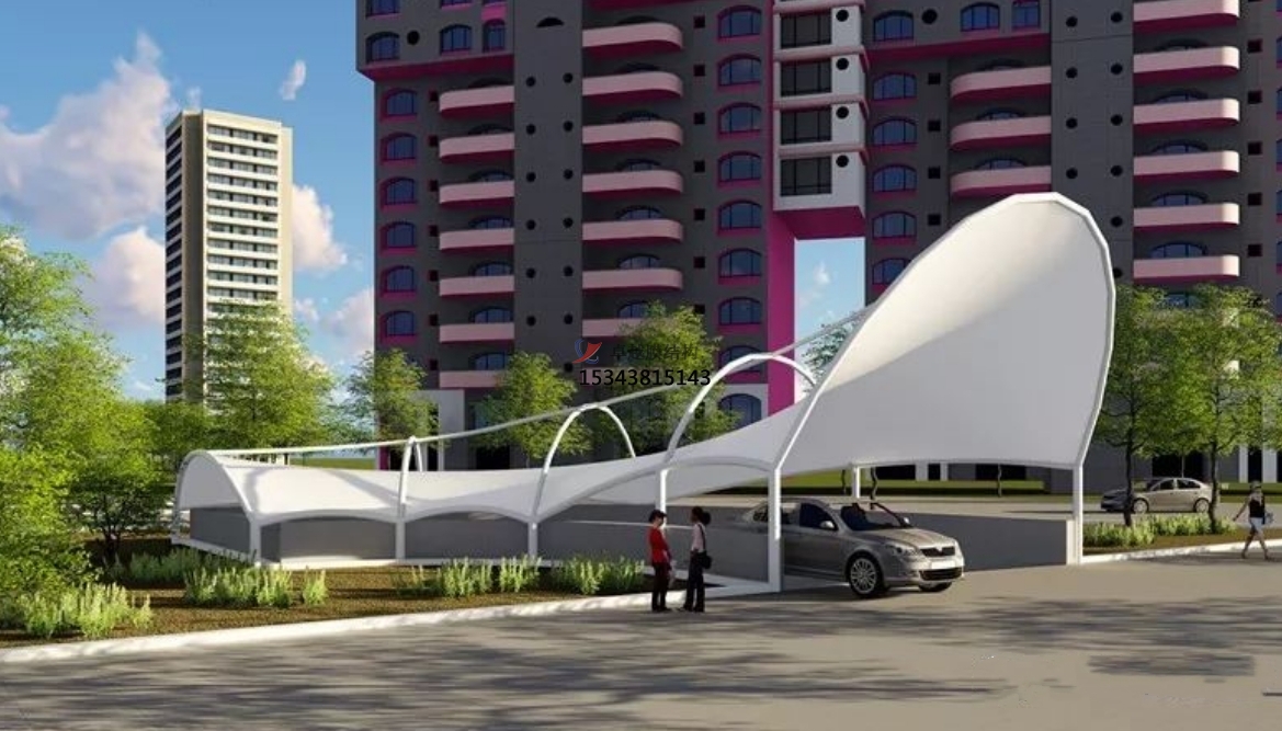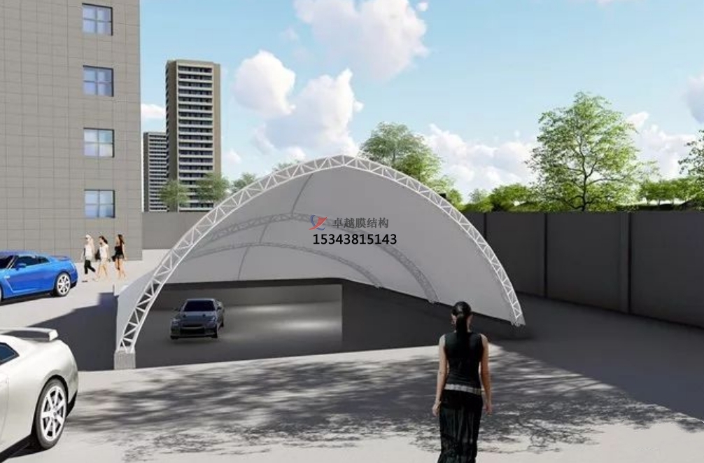 3、施工迅速,經濟性好:地下車庫出入口膜結構中使用的膜材、鋼材都是在工廠內加工,然后運送到現場進行安裝,這就大大減少了現場的施工時間,便于規模化生產,縮短項目工期,減少了工資支出。膜材自重較輕,加上采用鋼索,鋼結構等簡單框架支撐,大大減少了鋼構等材料的使用,從而降低工程造價,經濟性好;