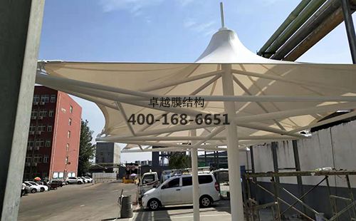 焦作隆豐皮草膜結構涼亭/遮陽傘工程,膜材展開面積為100平方,工程總造價******元,膜材單價***元(保密,具體請咨詢客服,想了解價格的可以參考《膜結構價格》)