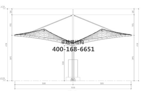 本工程膜材采用白色高端國產膜材PVDF高自潔環保建筑膜材,鋼結構采用更好的標準Q235B鋼材,表面采用酚醛底漆處理,面漆采用白色鋼結構專用快干磁漆。