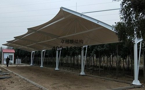 膜結構車棚/罩棚工程項目,11月23日我們卓越膜結構公司人員開始到現場施工。11月29日竣工。