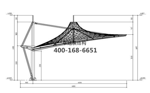 本工程膜材采用白色高端國產膜材PVDF高自潔環保建筑膜材,鋼結構采用更好的標準Q235B鋼材,表面采用酚醛底漆處理,面漆采用白色鋼結構專用快干磁漆。