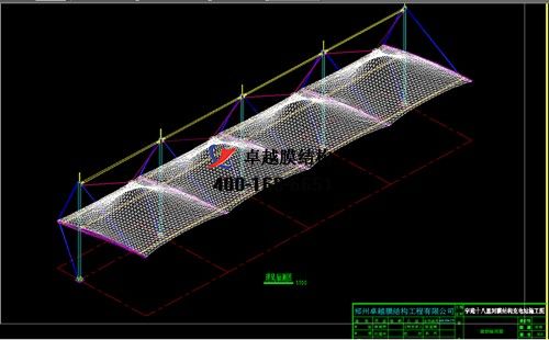 本工程膜材采用白色高端國產星益達PVDF高自潔環保建筑膜材和ETFE高端膜材,鋼結構采用更好的標準Q235B鋼材,表面采用酚醛底漆處理,面漆采用白色鋼結構專用快干磁漆。
