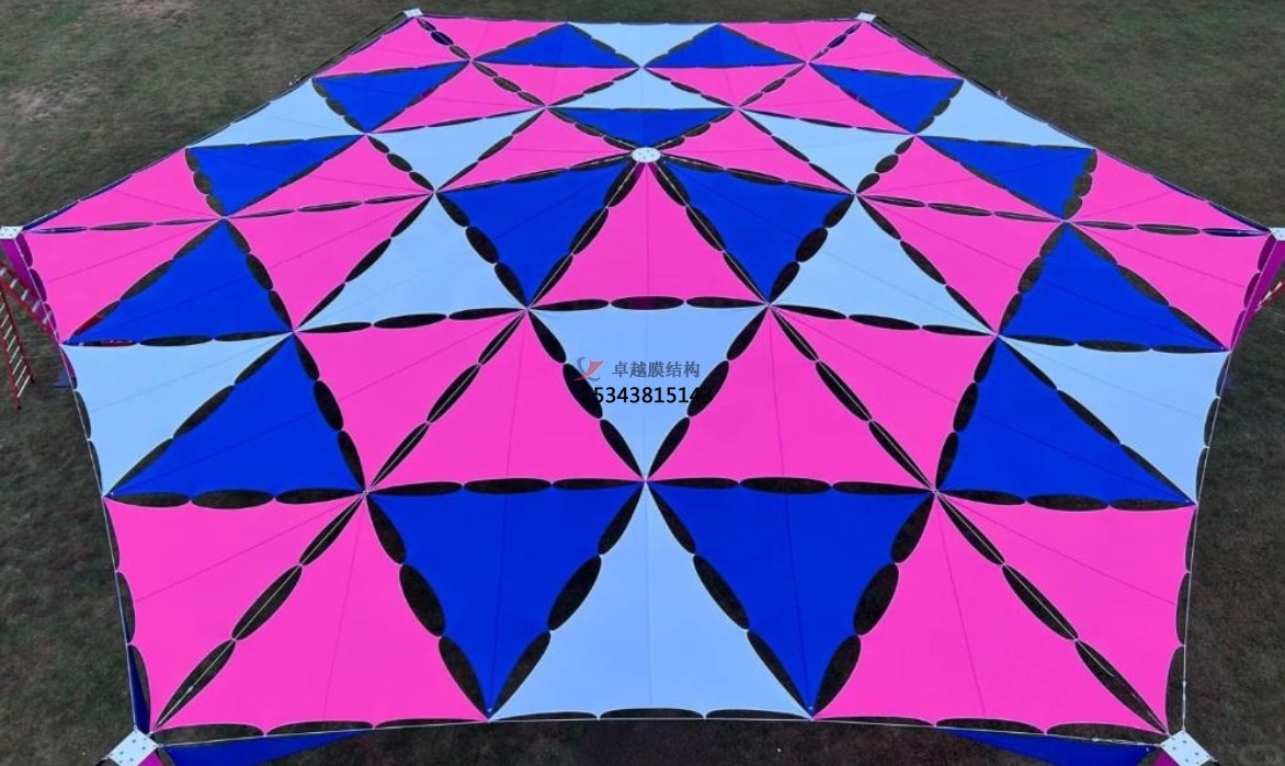 膜材具有一定的透光性,這為膜結(jié)構(gòu)帶來(lái)了光與影的奇妙變化。白天,陽(yáng)光透過(guò)膜材,在地面上投射出柔和的光影,形成一片片斑駁陸離的圖案,為廣場(chǎng)和公園增添了幾分詩(shī)意。人們行走在光影之中,感受著陽(yáng)光的輕撫,仿佛置身于夢(mèng)幻的世界。夜晚,通過(guò)精心設(shè)計(jì)的燈光系統(tǒng),膜結(jié)構(gòu)又搖身一變,成為光的藝術(shù)作品。燈光從內(nèi)部或外部照射,使膜結(jié)構(gòu)呈現(xiàn)出五彩斑斕的色彩,照亮了城市的夜空,吸引著人們的目光,為城市的夜晚增添了獨(dú)特的魅力。