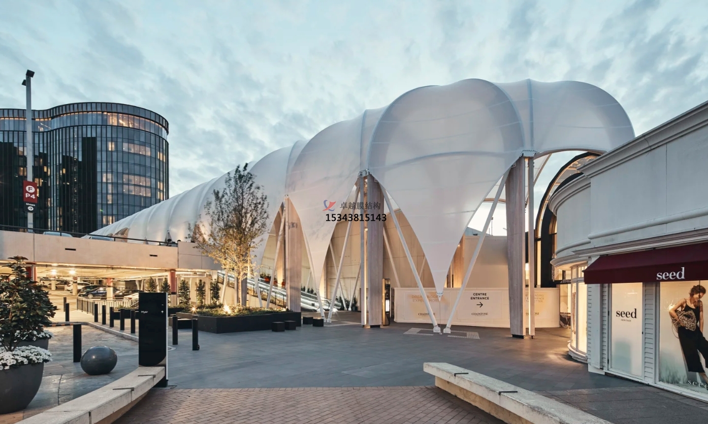 商業購物中心的主要特點是因商業店鋪的集中而形成了室內室外購物、休閑、餐飲等功能空間,步行街及中央活動區域是人們行走、休息、交流的開放空間,基于商業街特色,就決定了所有設計的核心就是讓空間更具人性化。屋頂作為建筑附加設施,不僅要求遮陽避雨的實用功能,也應該是錦上添花的設施。目前國內外膜結構應用于商業綜合體的工程案例越來越多,膜結構建造的屋頂擁有很多傳統屋頂所不具備的優勢特點。
