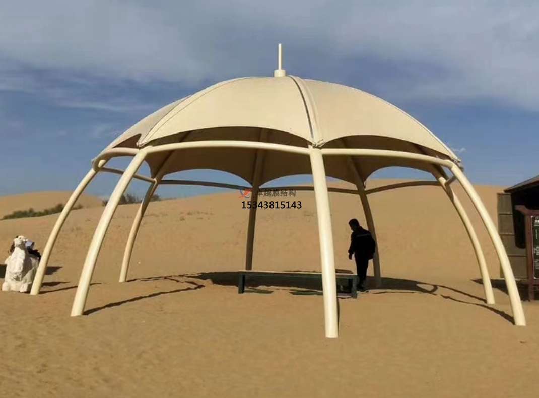 1‌、提升游玩體驗(yàn)‌:在炎炎夏日,膜結(jié)構(gòu)遮陽(yáng)棚能夠有效遮擋陽(yáng)光,為游客提供涼爽的休息場(chǎng)所。其良好的通風(fēng)性也能保持空氣流通,減少悶熱感,讓游客在游玩過(guò)程中更加舒適。