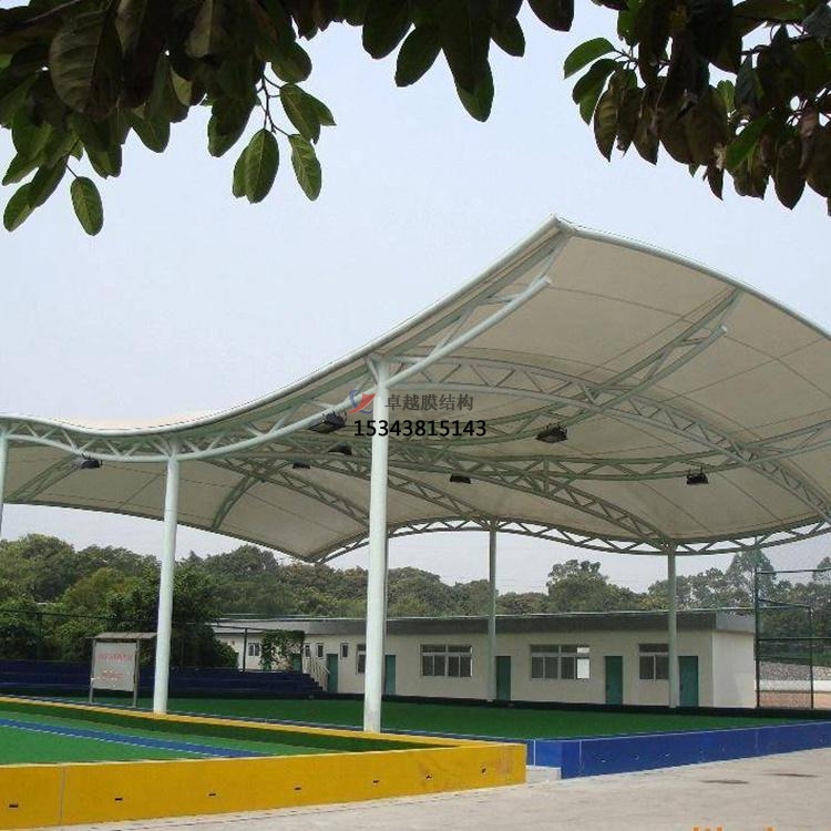 節點細部設計是商業廣場雨棚搭建車棚工程設計更重要的技術環節,不僅影響商業廣場雨棚搭建車棚建筑整體與局部建筑藝術性,且影響構件制作、安裝、結構受力安全、造價等。連接節點構造設計 充分體現了商業廣場雨棚搭建車棚設計的美學、專業性、綜合性與精密技術性,是商業廣場雨棚搭建車棚設計的靈魂。商業廣場雨棚搭建車棚節點具體形式紛繁復雜,十分豐富。根據膜作用與連接關系,可分為膜 節點、膜與剛性邊界、膜與柔性邊界索;