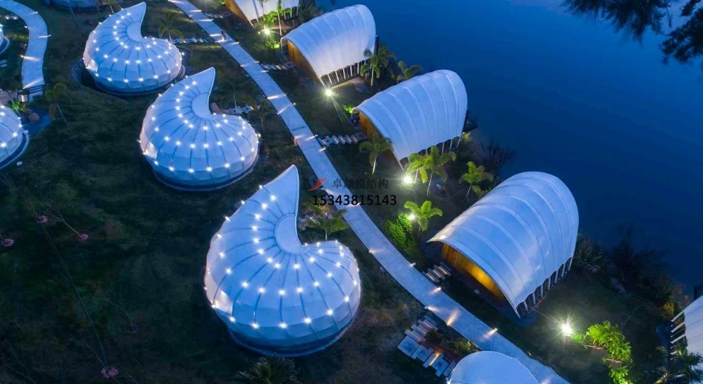 膜材料具有良好的透光性和熱反射性,能夠有效減少照明和空調(diào)能耗,降低碳排放。同時,膜結(jié)構(gòu)民宿帳篷酒店多采用可回收材料建造,符合現(xiàn)代環(huán)保理念。