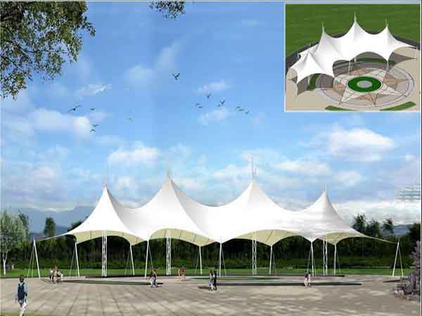 項目結構形式:四周軟邊骨架式膜結構景觀小品