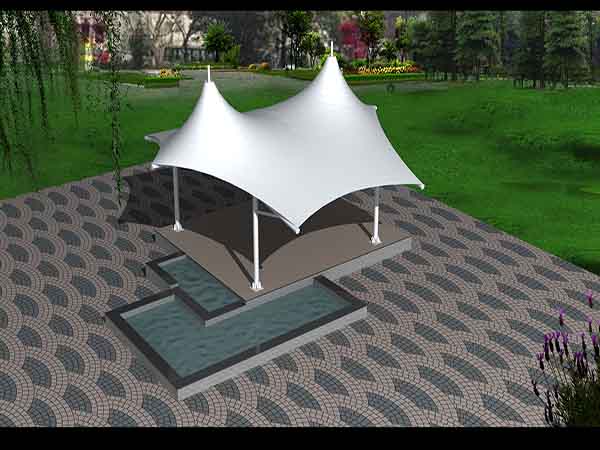 景觀結構形式:四周軟邊骨架式膜結構景觀小品