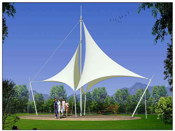 2、膜結構它是一種建筑與結構完美結合的結構體系,是用高強度柔性薄膜材料與支撐體系相結合形成的具有一定剛度的穩定曲面,能承受一定外荷載的空間結構形式。更好的膜結構設計是結構與外形的有機融合,使其顯得了類拔萃,同時與自然環境、歷史及現代的城市景觀有機結合。輕型結構可以看成是大型的雕塑作品,可為其周邊空間增添活力,成為周圍環境的補充和焦點 。