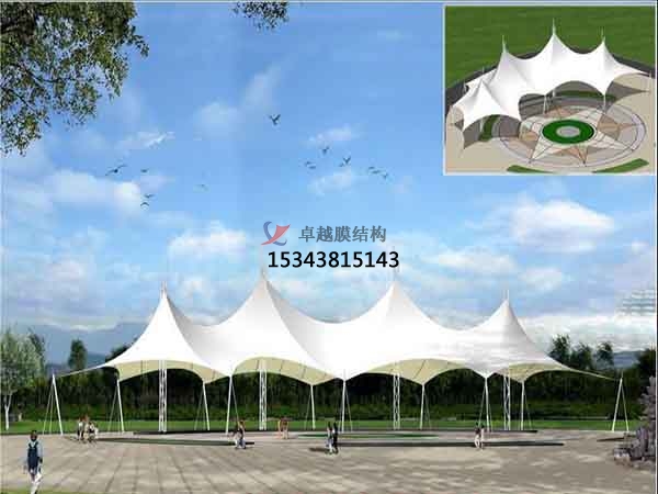 1、我公司在膜結(jié)構(gòu)建筑方面已有10年之久,這種結(jié)構(gòu)應(yīng)用廣泛,膜結(jié)構(gòu)車棚、看臺(tái)、收費(fèi)棚、球場(chǎng)、通道或入口、公園景觀小品、甚至能作污水池加蓋除臭及沼氣池儲(chǔ)氣罐之用。 可以滿足客戶的各種需求,從設(shè)計(jì)、施工、加工、安裝融為一體的專業(yè)性廠家。下面我給大家簡(jiǎn)單介紹下我公司在銅仁地區(qū)完成的一批膜結(jié)構(gòu)景觀小品案例,卓越公司在銅仁周邊完成了銅仁太平洋商業(yè)廣場(chǎng)膜結(jié)構(gòu)景觀、銅仁三江公園景觀小品、仁山文化主題公園膜結(jié)構(gòu)景觀小品的設(shè)計(jì)施工,詳情如下: