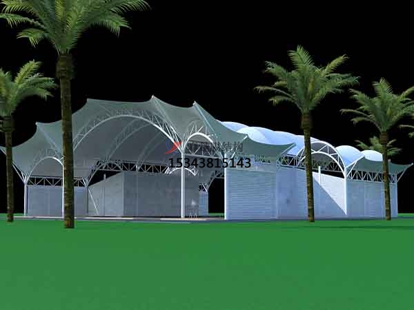 6、膜結構景觀具有結構牢固、外觀新穎,經濟適用,適用壽命長,節能環保等優點。深受廣大用戶的一致好評,卓越所有工程全部都是通過專業3D3S膜結構軟件計算通過,結構安全,質量可靠。