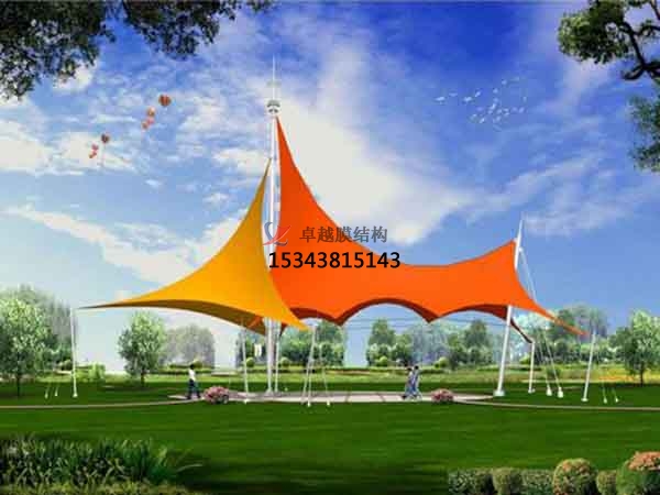 2、膜結構它是一種建筑與結構完美結合的結構體系,是用高強度柔性薄膜材料與支撐體系相結合形成的具有一定剛度的穩定曲面,能承受一定外荷載的空間結構形式。更好的膜結構設計是結構與外形的有機融合,使其顯得了類拔萃,同時與自然環境、歷史及現代的城市景觀有機結合。輕型結構可以看成是大型的雕塑作品,可為其周邊空間增添活力,成為周圍環境的補充和焦點 。