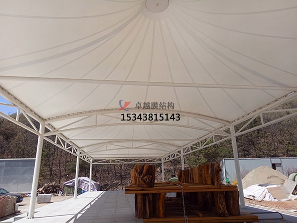 2、膜結構具有輕盈穩定的結構特性,其重量是傳統建筑的三十分之一,利用這一特點能設計和組織結構細部構件,創造巨大的無遮擋可視空間。膜材表面的防護涂層(PVDF,PTFE等),具有耐高溫的特點,而且本身不發粘,落到膜材表面的灰塵能靠雨水的自然沖洗而達到自潔效果。 下面大家一起來了解一下我司在德州市周邊縣市完工的一些膜結構景觀案例: