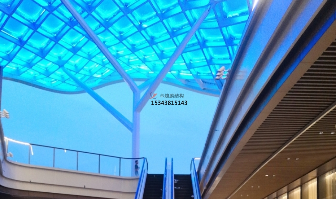 杭州銀泰廣場的波浪形ETFE天幕,白天透光率達40%以上,減少人工照明需求;夜晚結合LED燈光系統,形成動態光影藝術場景。