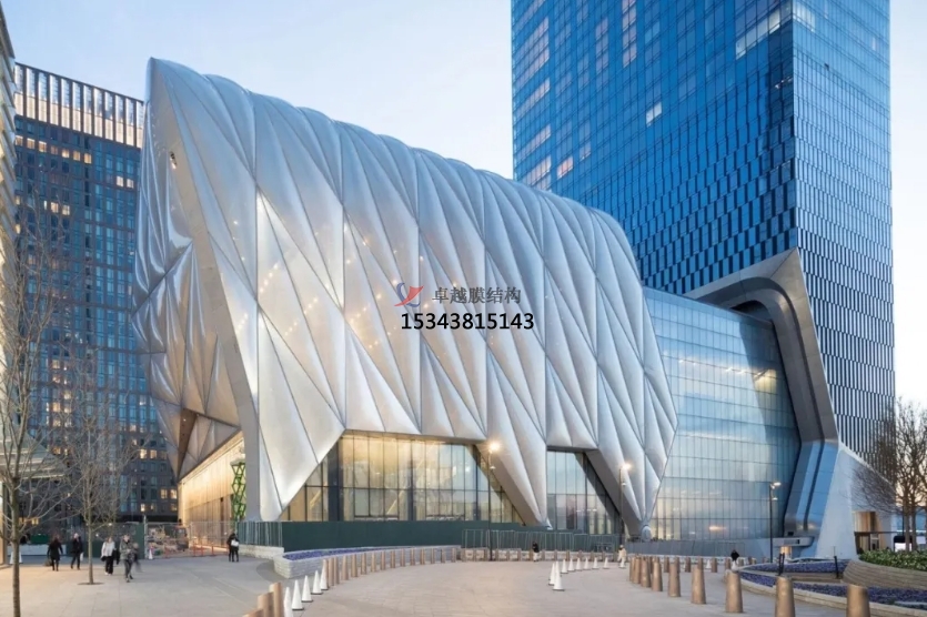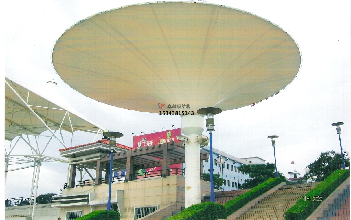 如今在繁華商業廣場上頻繁出現有新型膜結構遮陽雨棚的身影,深受商業建筑歡迎。