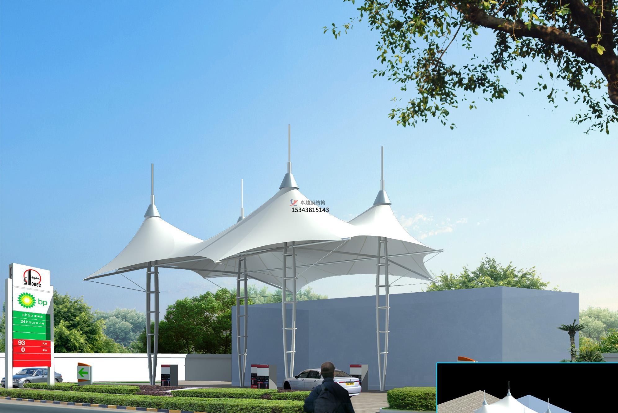 1、金龍二站加油站張拉膜雨棚/頂蓋