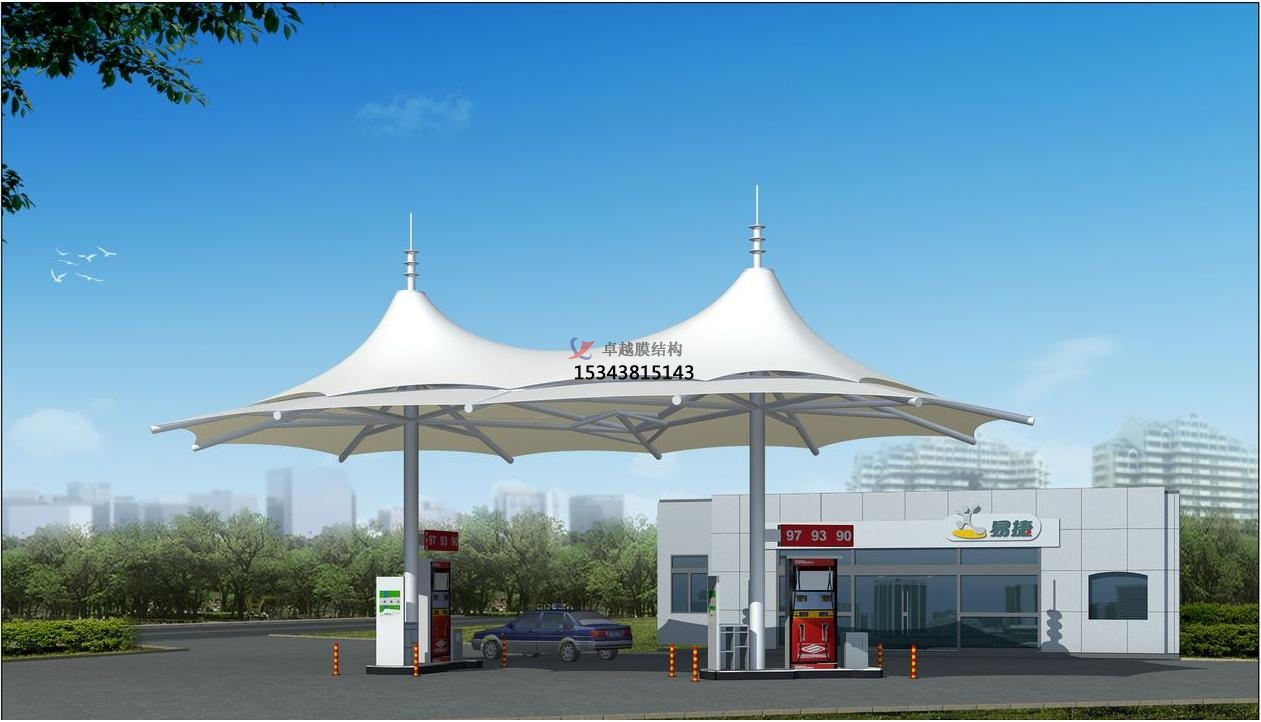張拉膜雨棚/加氣站頂蓋主要采用鋼結(jié)構(gòu)做骨架支撐結(jié)構(gòu),高自潔建筑膜材做屋面材料防水材料,設(shè)計(jì)美觀大方,結(jié)構(gòu)安全穩(wěn)定,使用壽命可達(dá)15年到30年。廣泛應(yīng)用在于各類大小加油站和加氣站。卓越張拉膜雨棚工程是較早年開展張拉膜設(shè)計(jì)施工的專業(yè)廠家,擁有各類張拉膜設(shè)計(jì)施工總承包資質(zhì),現(xiàn)在為大家介紹一下我司在開封周邊地區(qū)完工的一批張拉膜雨棚工程案例,我司先后在開封附近地區(qū)完工了開封和源燃?xì)庥邢薰竟黄嚰託庹緩埨び昱镯斏w、鄭新奧天然氣開封邊村加氣站張拉膜雨棚遮陽篷、中國石化(中國朱仙鎮(zhèn)木板年畫博物館東南)張拉膜雨棚罩棚等一批完工項(xiàng)目,給大家簡(jiǎn)介一下: