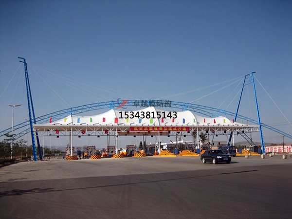 膜結構車棚在室內人們對白色或米白色膜材會有很好的色彩感知,因為這兩種色彩表現出對可見光具備線性光譜透射的特征。透射程度隨透射光波長的增添而增添,這使得透射光比入射光略暖和。透射光譜與纖維及其特性、涂層的厚度以及附加面層有差,生產商應給出更多的具體信息。相對于涂覆PVc的聚酯纖維膜材,涂覆PTFE的玻璃纖維膜材的透射光譜。