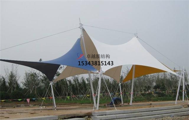 張拉膜景觀立柱底腳選用10mm厚鋼板與預埋件結(jié)實焊接,在裝置張拉膜景觀的時分將預埋件用混凝土澆筑后,用螺栓與立銜接,抗風系數(shù)高,添加張拉膜景觀全體結(jié)實程度,能反抗12級以上颶風來襲4、張拉膜景觀內(nèi)部選用Φ38鍍鋅圓管與張拉膜景觀結(jié)構(gòu)焊接,加強棚頂部強度,可讓棚內(nèi)感覺寬闊亮堂,停靠車輛輕松便利,完全符合張拉膜景觀制造要求標準。