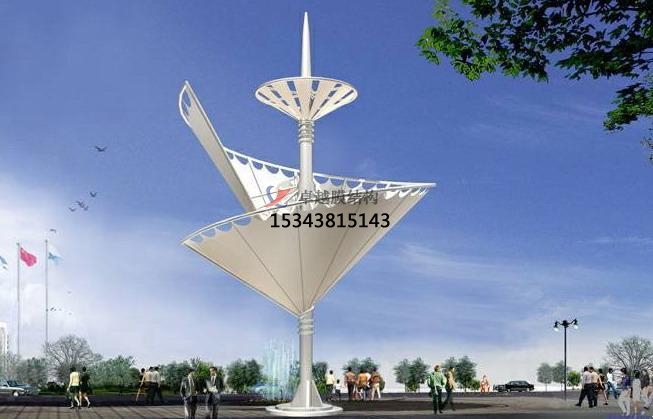2、一個城市的中心區反映一個城市的地理風貌和民族風情,同時,也是一個城市文化發展程度的標志。而景觀設計要求其具有廣泛的可讀性、雅俗共賞,既有超凡脫俗的藝術價值,又能使大眾喜聞樂見與大眾息息相通。張拉膜以其輕盈飄逸的造型、柔美并帶有力量的曲線和大跨度和大空間的鮮明個性和標識性,應用于城市小品設計中。