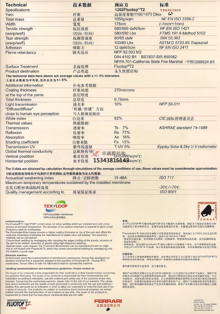 法拉利膜材料1202T2技術參數: