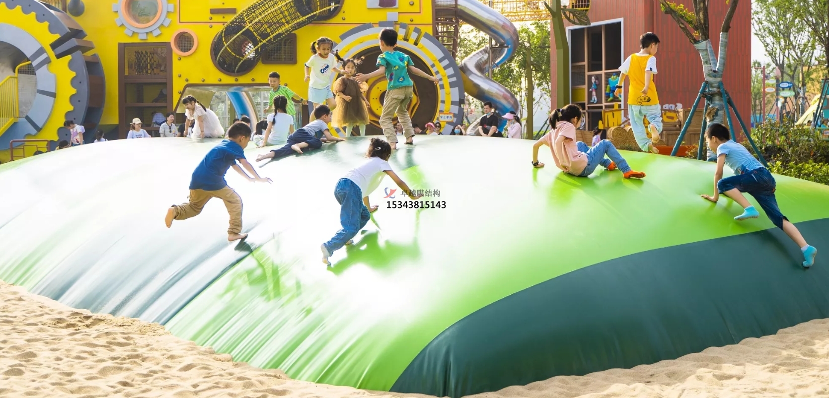 游樂場(chǎng)與親子樂園:作為兒童游樂設(shè)施,蹦蹦云在游樂場(chǎng)和親子樂園中廣受歡迎。它為孩子們提供了安全、有趣的游樂空間,有助于激發(fā)孩子們的運(yùn)動(dòng)潛能,促進(jìn)他們的社交互動(dòng)。而且蹦蹦云的尺寸和形狀可以根據(jù)場(chǎng)地需求定制,無論是大型游樂場(chǎng)還是小型親子樂園都能適配 。
