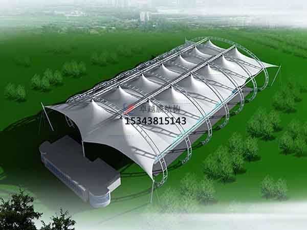 膜結(jié)構(gòu)是一種建筑與結(jié)構(gòu)完美結(jié)合的結(jié)構(gòu)體系。它是用高強(qiáng)度柔性薄膜材料與支撐體系相結(jié)合形成 具有一定剛度的穩(wěn)定曲面,能承受一定外荷載的空間結(jié)構(gòu)形式。其造型自由輕巧、阻燃、制作簡(jiǎn)易、 安裝快捷、能易于、使用安全等優(yōu)點(diǎn),因而使它在世界各地受到廣泛應(yīng)用。這種結(jié)構(gòu)形式特別適用于 大型體育場(chǎng)館、人口廊道、小品、公眾休閑娛樂(lè)廣場(chǎng)、展覽會(huì)場(chǎng)、購(gòu)物中心等領(lǐng)域。