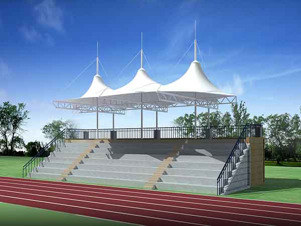 張拉膜看臺主要用于各類地方體育場主席臺雨棚,各類學校體育場看臺雨棚遮蓋,我公司是國內較早從事大懸挑張拉膜結構看臺設計施工的專業廠家,下面介紹一下我們在景德鎮市周邊縣市完工的一些張拉膜看臺設計施工案例,我公司先后在景德鎮周邊承接了景德鎮陶瓷大學張拉膜看臺雨棚、景德鎮學院張拉膜看臺罩棚、景德鎮陶瓷職業技術學院張拉膜看臺遮陽棚等設計施工項目,簡介如下: