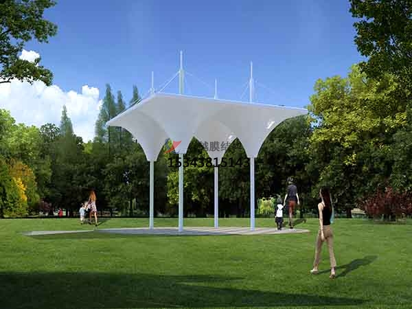 景觀膜結構工程能提供豐富多彩的用途,并與園林景觀溶為一體。創造出讓人們盡情享受的快樂空間。充分展示了結構構件清晰受力的藝術之美,它巧妙的整合周圍的環境,給人們一種高貴典雅、浪漫溫馨之感。另外由于膜材料本身特有的顯色性,在夜間彩燈的映射下能形成絢麗繽紛的景觀。不僅為人們提供遮陽避雨的空間。同時,更由于這種生動活潑的造型能給人們帶來時尚、輕松的休閑感受,所以廣受歡迎。