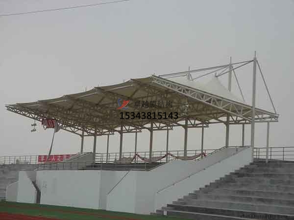 1)張拉式膜結構。這也是現在比較常見的一種,主要以膜材、鋼索及支柱構成,是更能夠展現出膜結構創新美觀造型的形式。