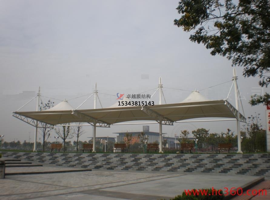 結構形式:單懸梁骨架式張拉膜遮陽棚