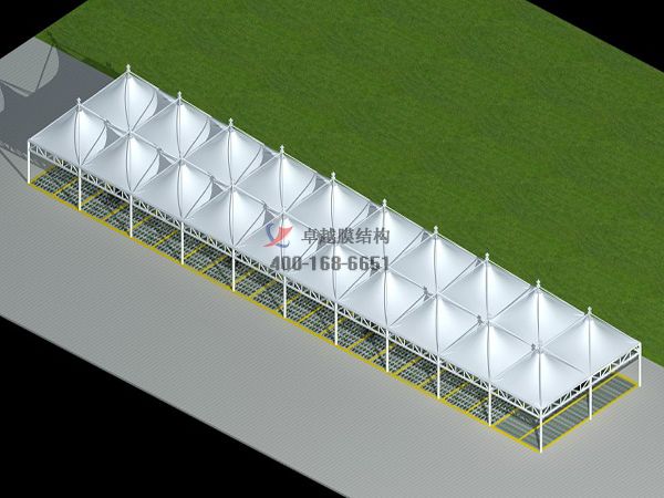 這是我司衡陽及華北地區完工的膜結構停車棚工程案例,膜結構停車棚具有外觀新穎,經濟適用,適用壽命長,節能透光等優點。深受廣大用戶的好評,我司所有工程全部通過專業膜結構軟件計算通過,結構安全,質量可靠,歡迎來電訂購,聯系電話:0371-55068488,小編期待您的咨詢。